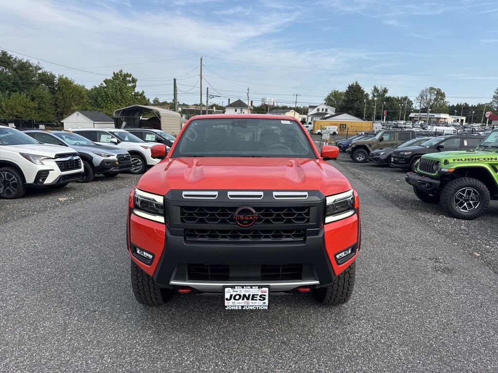 2025 Nissan Frontier Orange 4D Crew Cab 4WD 9-Speed Automatic with Overdrive Clean CARFAX. Odometer is 4019 miles below market average! 18/22 City/Highway MPG